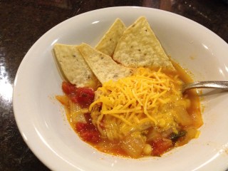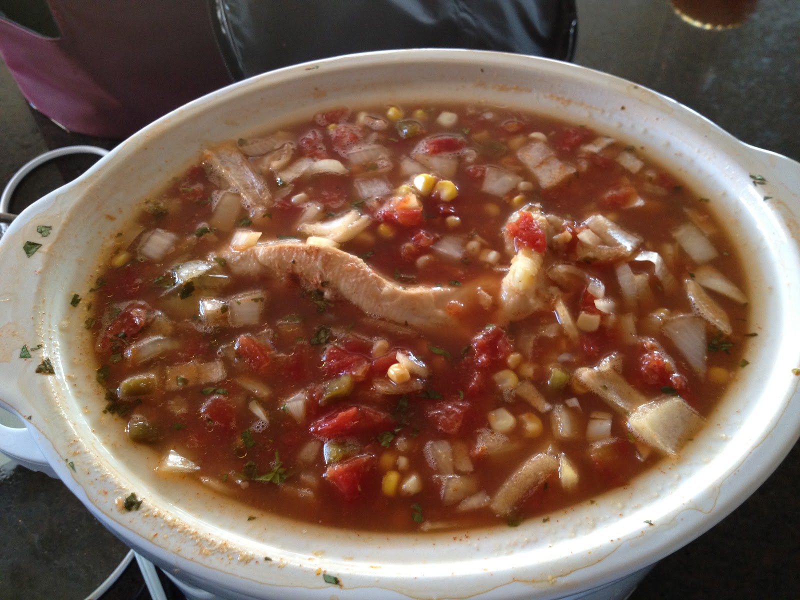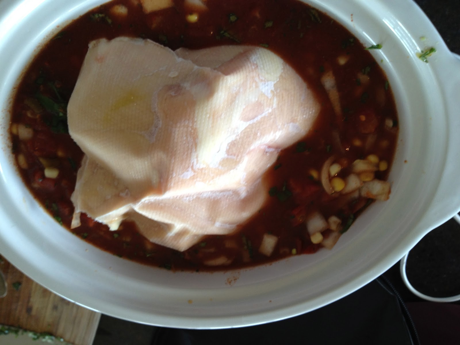 I love cooking in the crockpot.  It has to be the easiest thing ever.  You just throw everything in and wait until it’s ready.  I found this really easy to cook chicken tortilla soup online, so I thought it was worth a try.  The most stressful part of the whole thing was going grocery shopping.  Since my husband was at work, I had to go myself.   I hate going to the grocery store.
