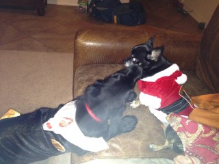 Today I was really excited when one of my friends gave me some new dog clothes!  There’s just something about dog clothes that is so entertaining!  It doesn’t really matter if they are in season or not.