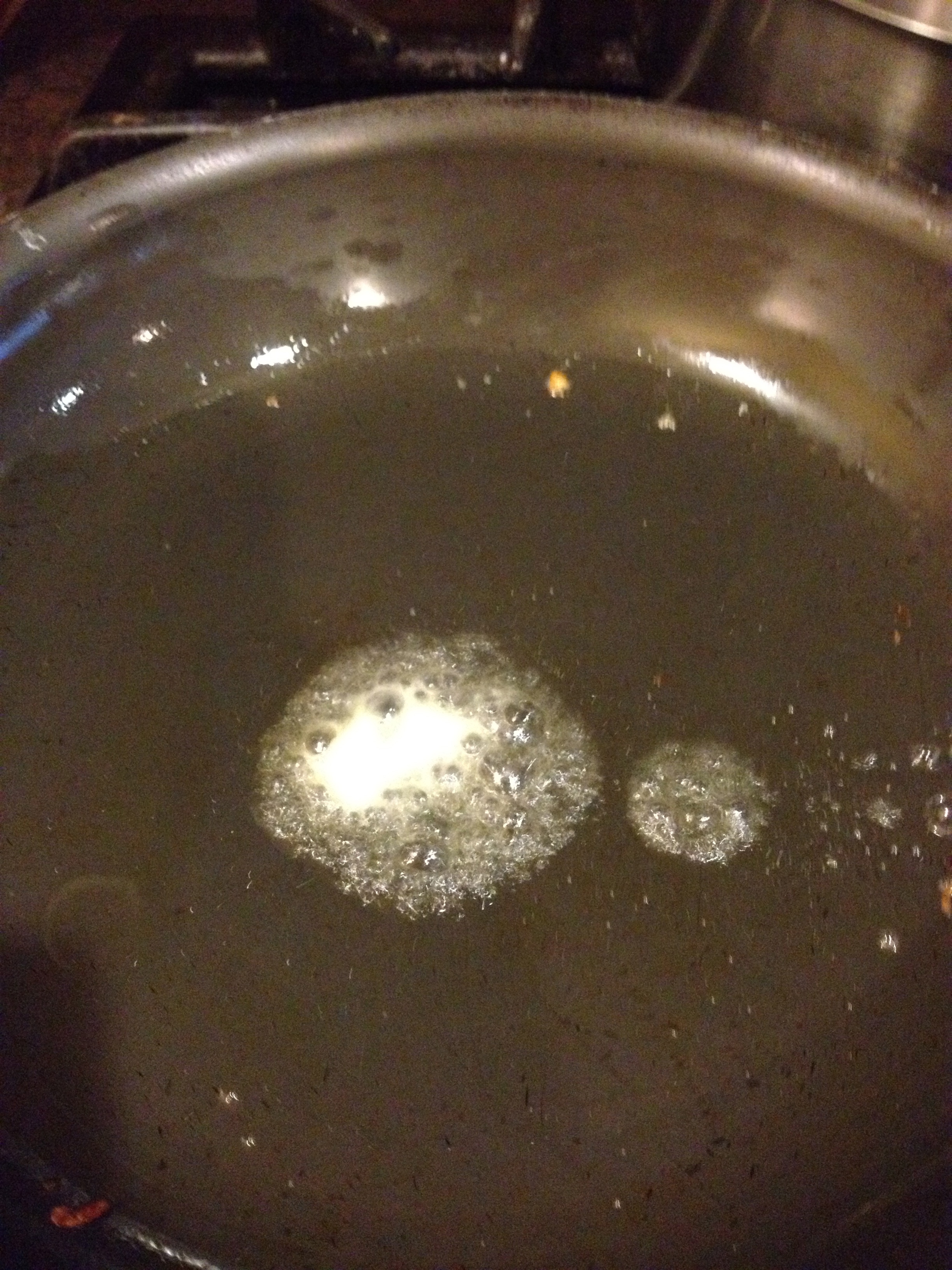 Put a tortilla on top of the butter and add cheese to the top of the tortilla. (You could put meats or veggies on here too, but I just like cheese.)