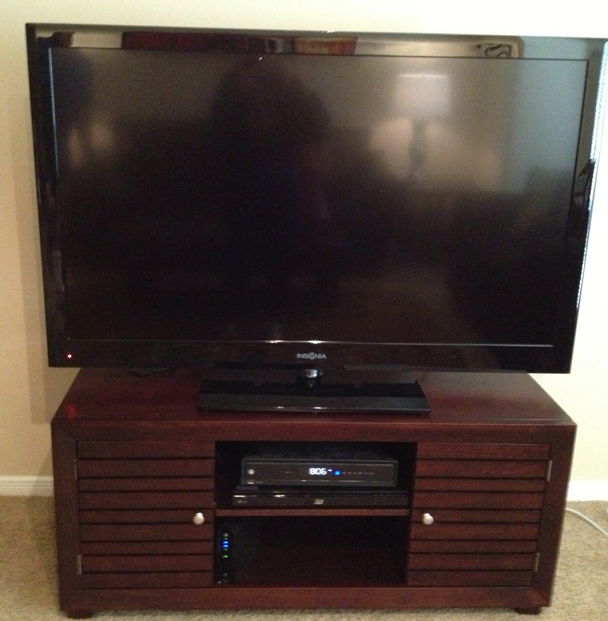 The TV is from Best Buy. Once the furniture is delivered, you go pick up the TV at your convenience. When I called to make sure the 51″ Samsung Plasma TV that came with the package was in stock, I found out that it wasn’t. The man suggested that I get a 50″ Insignia LCD TV for a few dollars less and that would leave me some to spend. Instead, I found a 55″ Insignia LCD TV on sale for $599, so I added some money and got that instead. My motto has always been the bigger the better when it comes to TV’s!