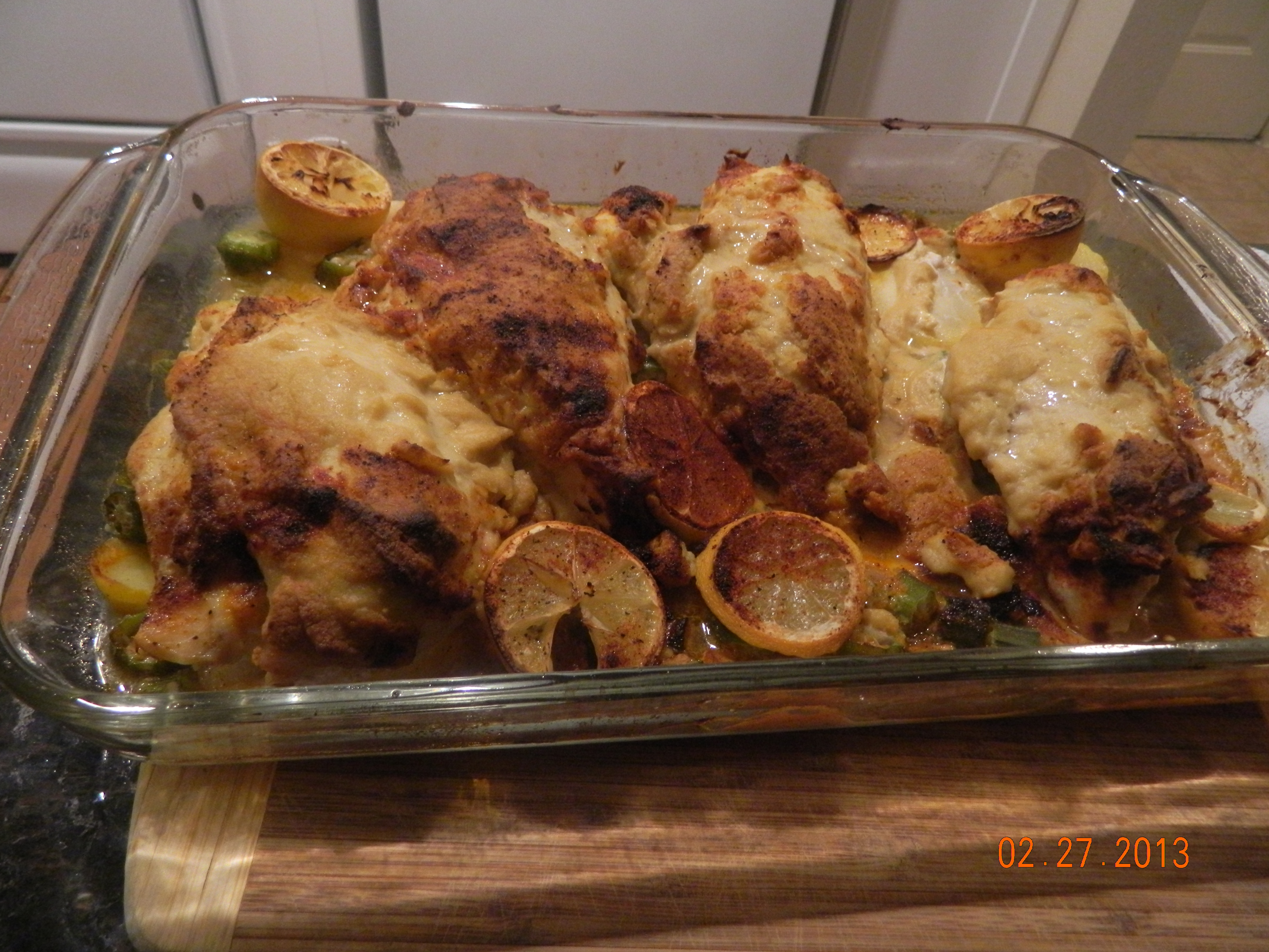 Cook in the oven on 375 for about 45 minutes or until cooked through.