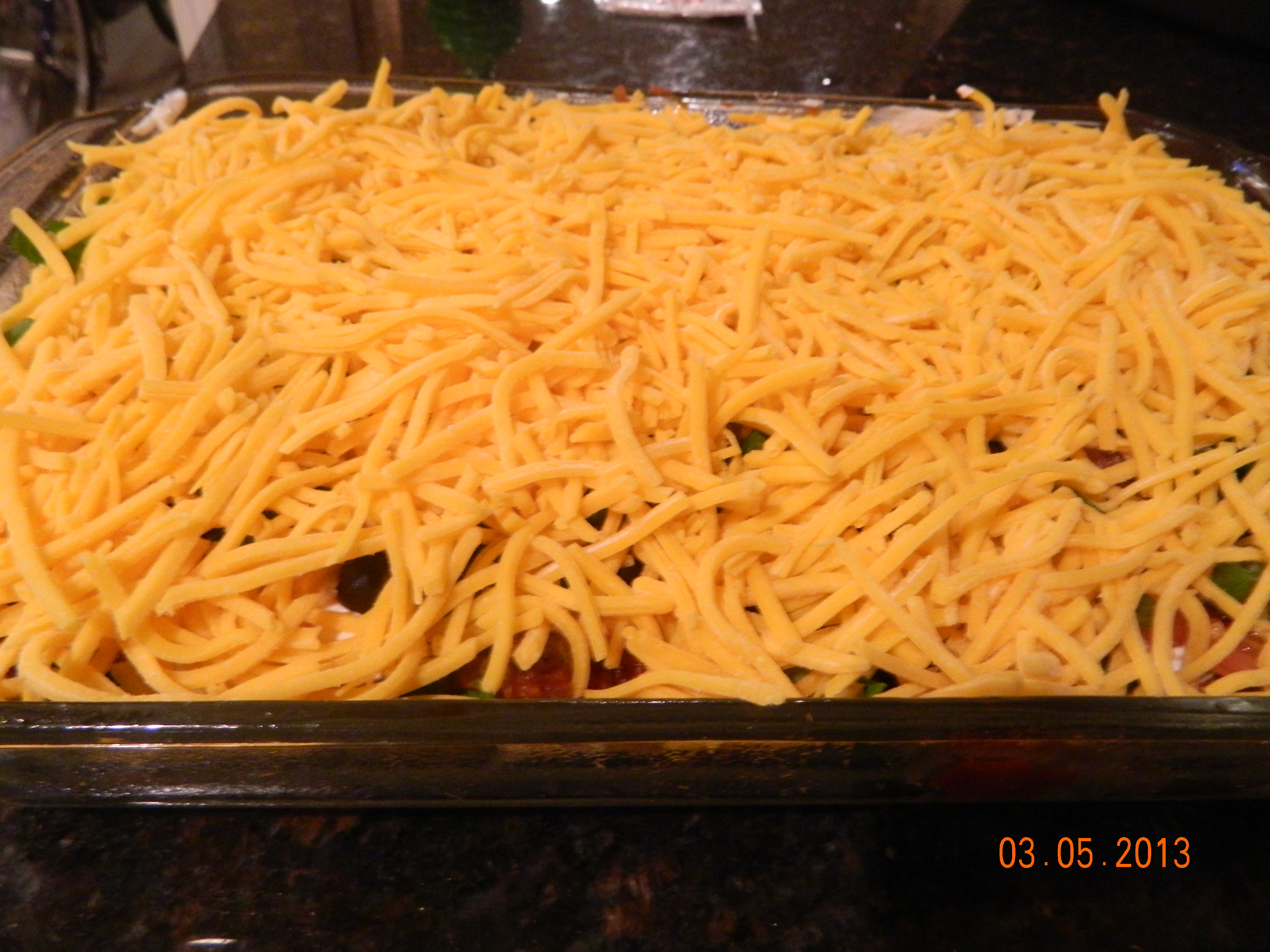 I always say that Mexican food is my favorite food, but in reality it probably isn’t. I only really like nachos and fajitas. It doesn’t really matter though, most Mexican food places have both of them on the menu. Even knowing this, for some reason, when I’m looking for recipes, I always seem to look for something that falls under the Mexican food umbrella. To be honest, I’m not really sure what actually makes something Mexican food versus just regular food…I just knew I wanted to make a casserole that could last me for about a week. Of course, I looked on Pinterest for the easiest “Mexican” casseroles I could find. This one was adapted from a pin from Trickchef’s blog. I don’t know that this could be defined as a true casserole or if it is more of a cooked seven layer dip. Either way, it was really yummy and I highly recommend it for people on the go, like I seem to be!