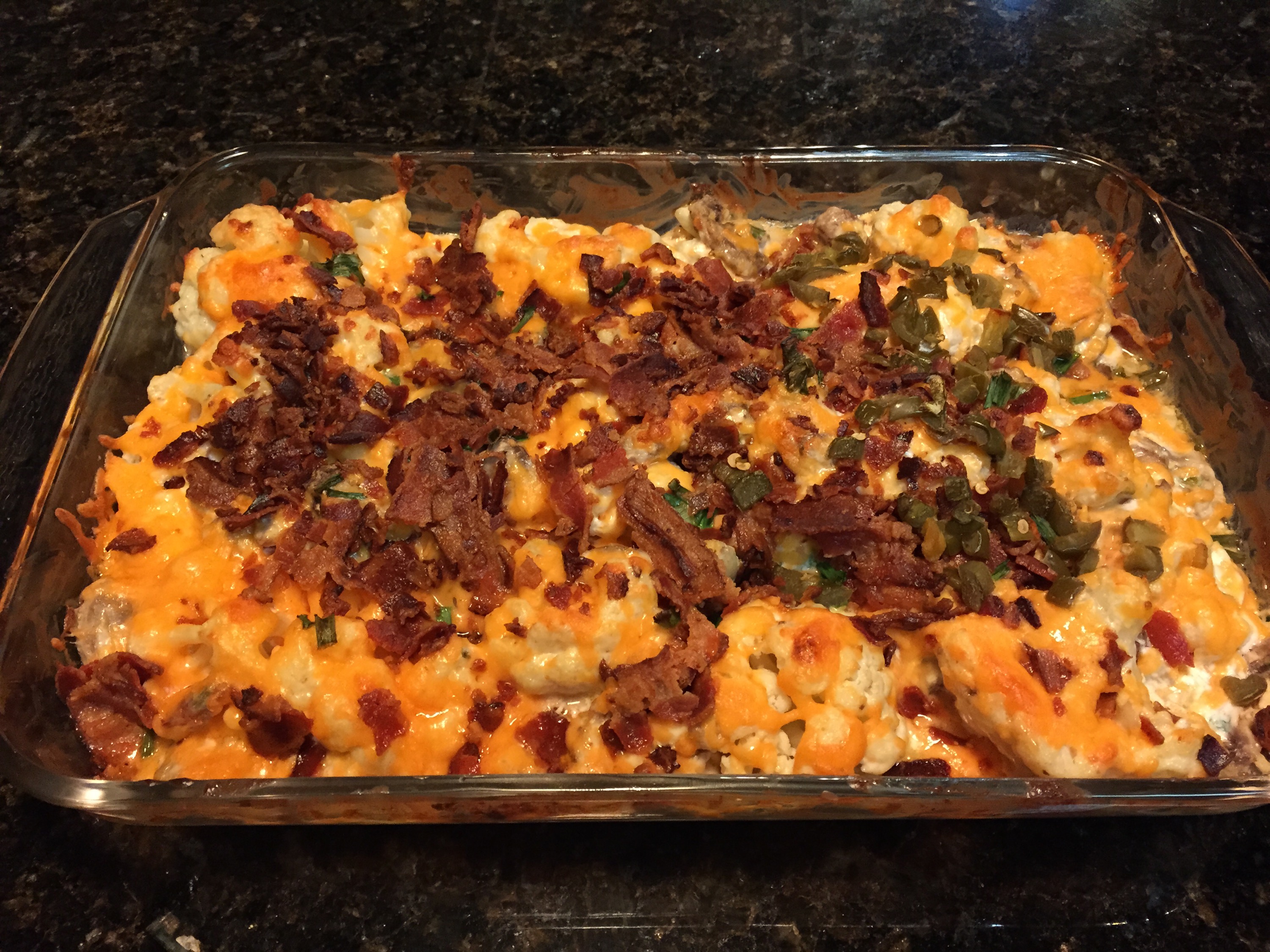 Now that I’ve booked my cruise, it’s time to start eating more healthy. I’ve tried low carb before and it really seems to work, so I’ll try it again. I found this recipe on Facebook, and it kind of reminded me of loaded cheese fries, but with cauliflower instead of fries. I can’t find the website where I found this recipe. When I find it again, I’ll add the originator’s website. This was SOO good. I WILL be making this again!!