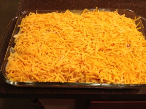 Pull out of the oven and cover the casserole with more cheese and put back in the oven for another 10 – 15 minutes.