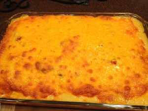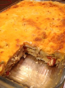 I’m still trying to make a dish that I can eat when I get home from work, but the biggest problem I have is that I make all this food and then life gets in the way of me eating my creations. I made this casserole on Monday and here it is Thursday and I’ve only eaten it once. I think tomorrow I will bring some of it to lunch or maybe I will even eat it for breakfast. The one time I got to eat this, I really enjoyed it. I recommend it as a keeper recipe since it’s good and REALLY easy to make! I found this recipe on the Paula Deen website and made a few adjustments to meet my tastes.