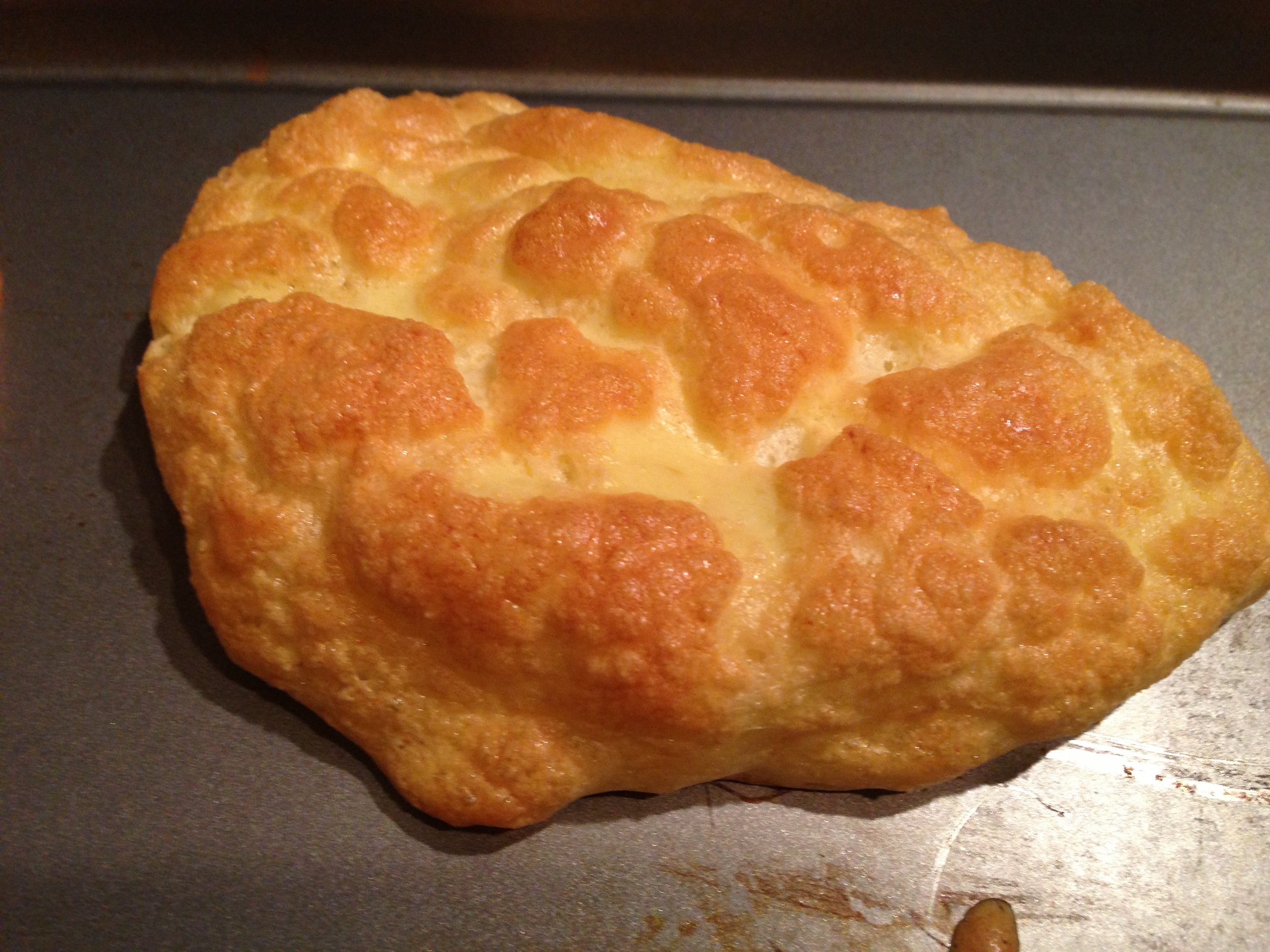 Mix the egg yolks and the cream cheese well. If you choose, 1tsp of cream of tarter or baking powder (this makes the Oopsie more bread-like).20130825-211113.jpg