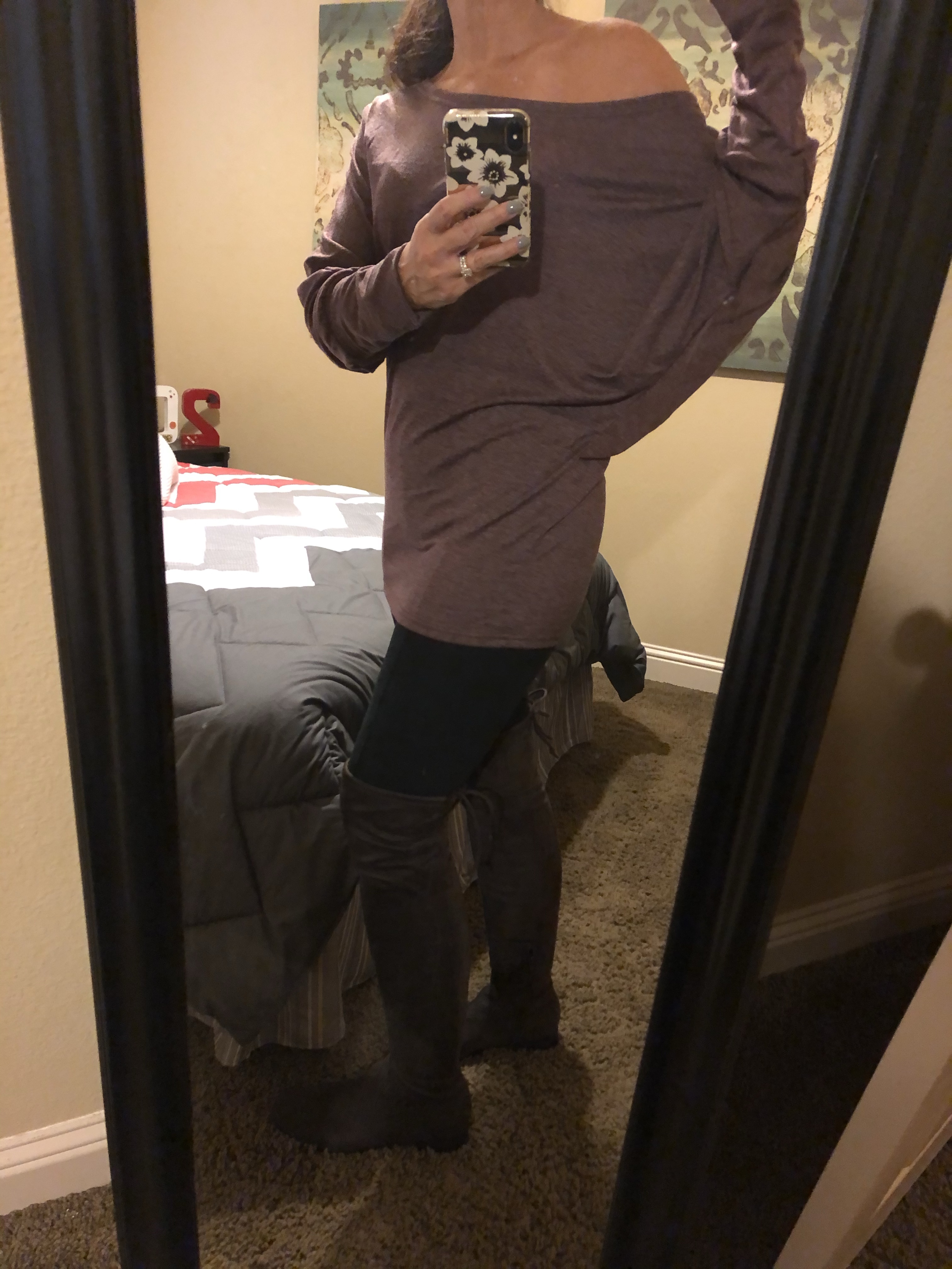 I already feel like a winner, as I was pleasantly surprised by this gray leopard print sweater. It fits so perfectly and is a cozy soft sweater material. I’m planning on wearing this to the casino this weekend, but I’m pretty sure it’s going to become a staple in my wardrobe!! They have lots of other color options and even some other prints. I may have to load up on these, because this is the perfect sweater to wear to work or with jeans! Dress it up or dress it down! I’m wearing a size small. The price is right, too!! It’s under $20!!
