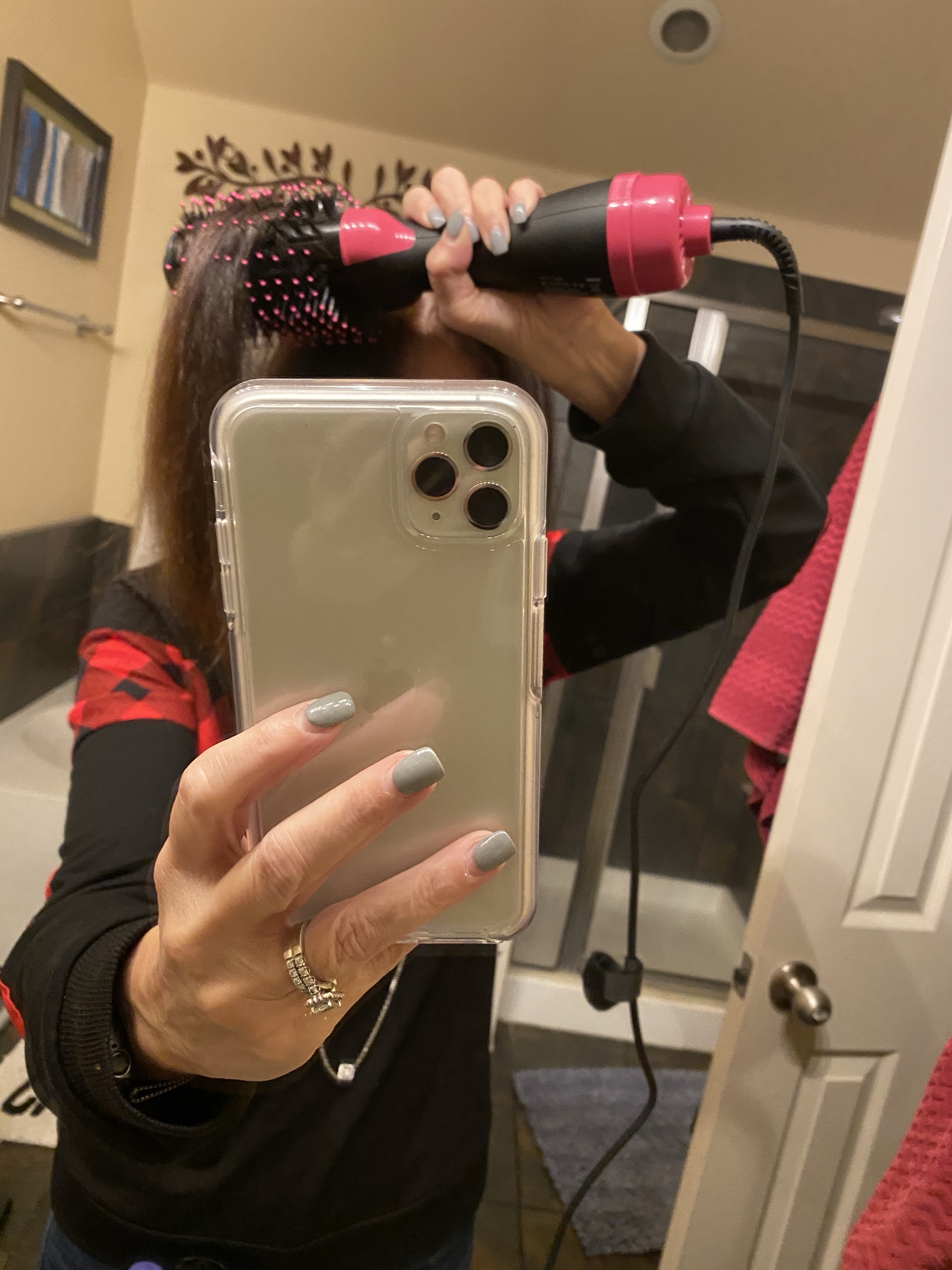 On a whim, I bought a hair dryer brush. I had one before and the bristles were so small that it didn’t work with my thick hair, but I wanted to give it another try. I’m sure glad I did. I was able to dry my hair today and didn’t have to straighten it afterwards! I highly recommend this dryer brush if you have thick curly hair!