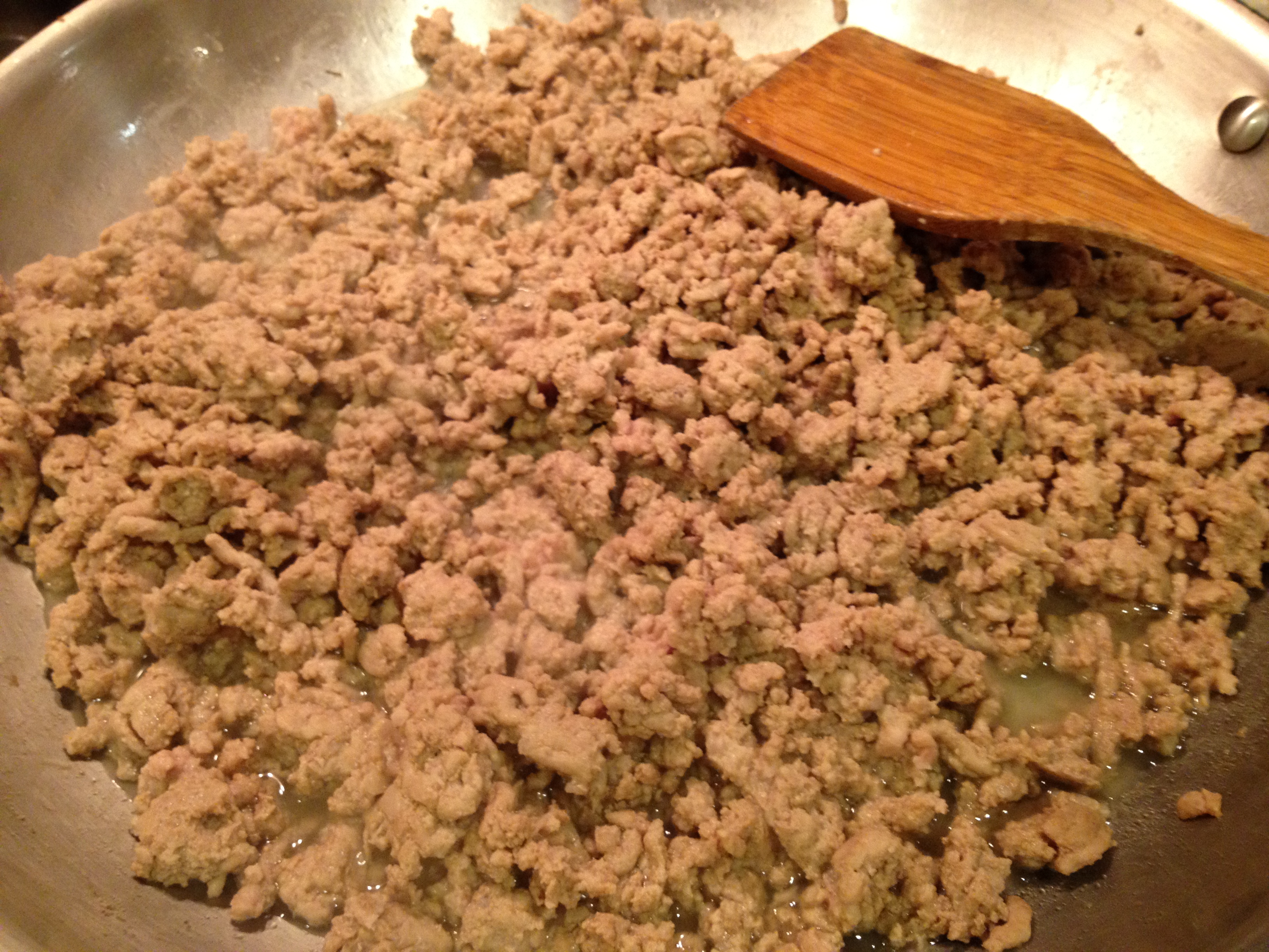 Put all of the vegetable ingredients, meat, and the spaghetti sauce together in a really large skillet and cook until the vegetables begin to get soft.
