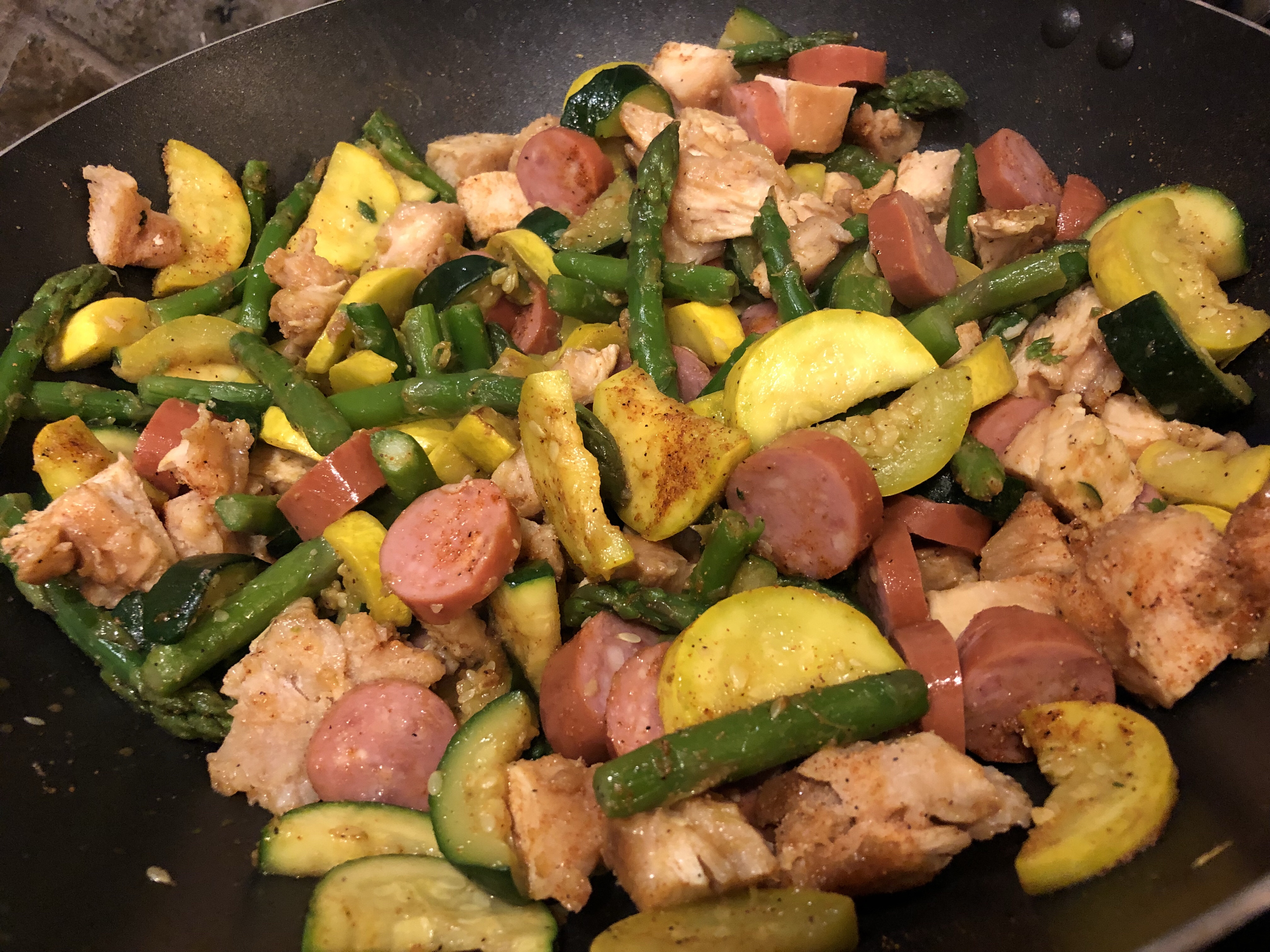 Then I threw in the asparagus and sprinkled the cajun seasoning all over it.