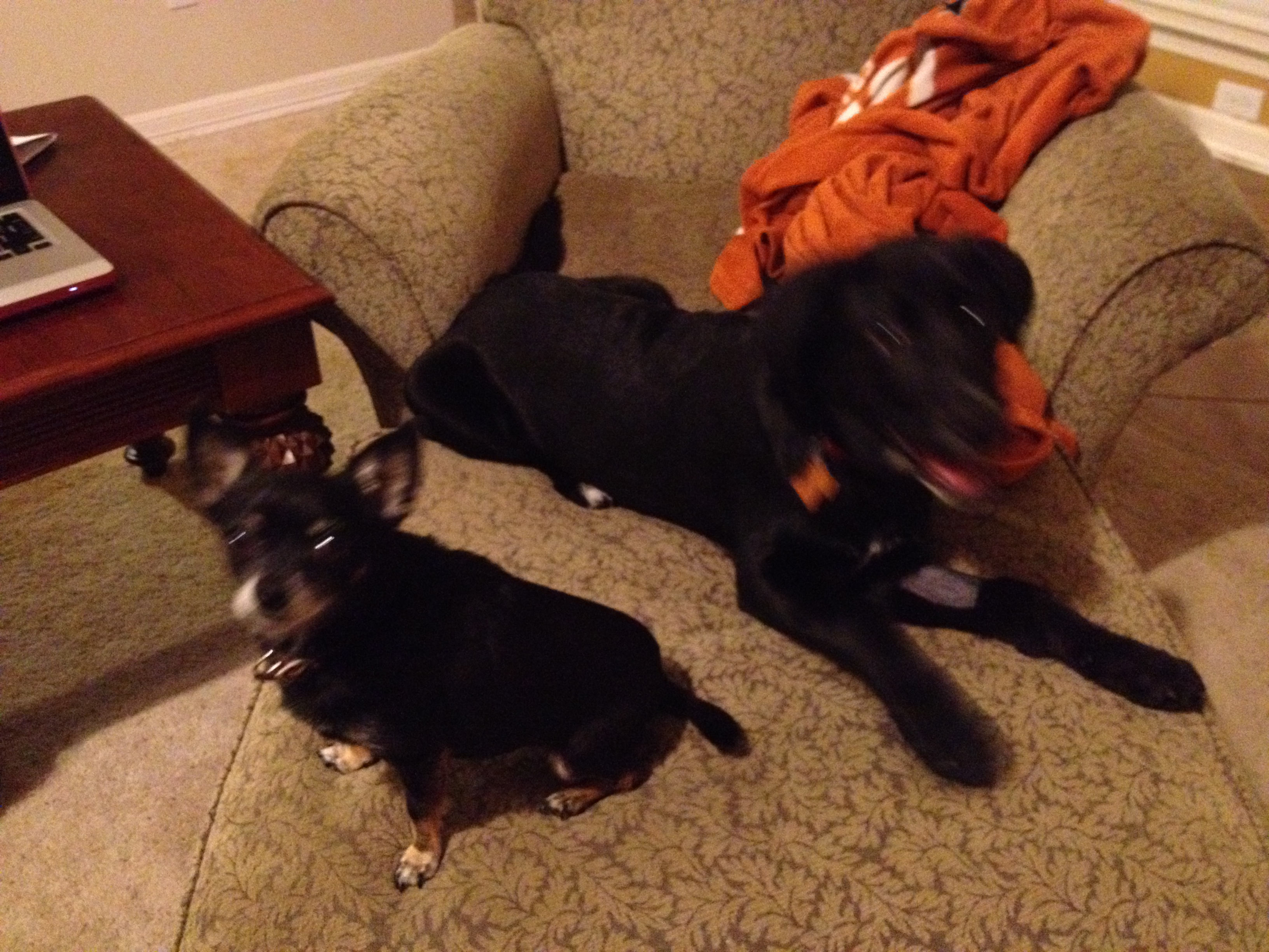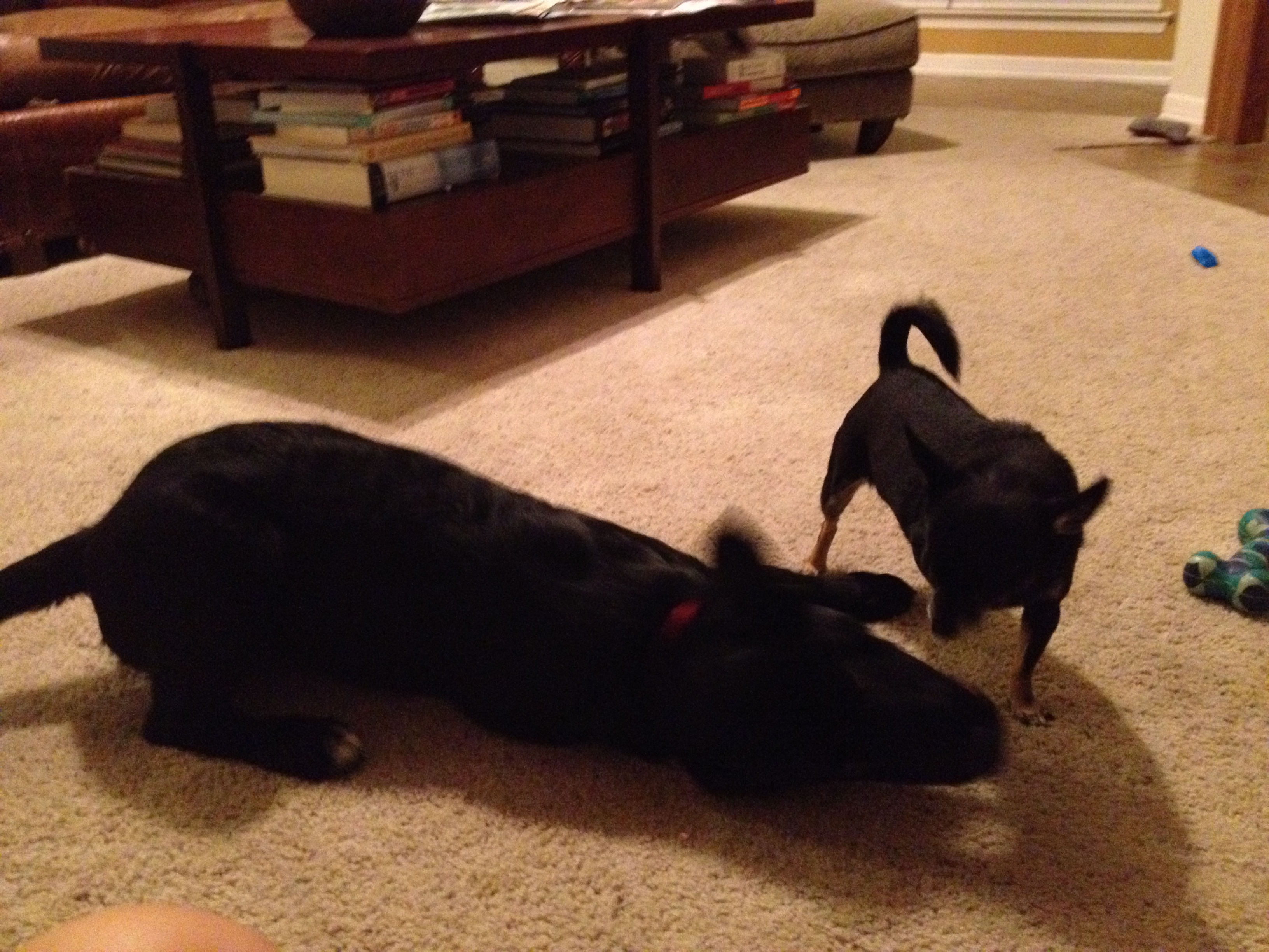 Shannon’s dog, Pete, quickly taught Cooper how to get on the picnic table, which doesn’t really go with our policy of staying off the table, but I guess it’s not that big of a deal.