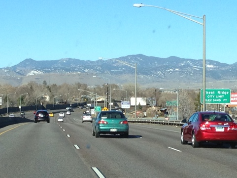 We have been driving since 9:00 last night. Mike said he was going to drive 8 hours straight. Two hours in he asked me to drive. I got us through Oklahoma and in to Kansas. When I got lost I decided to give up my turn. I drove about 3 1/2 hours. After that Mike took back over and I slept. Paul is driving the final part of the trip. We made it to Denver so I guess we are about 2 hours away. I think we are going to night ski tonight. I can’t wait!!